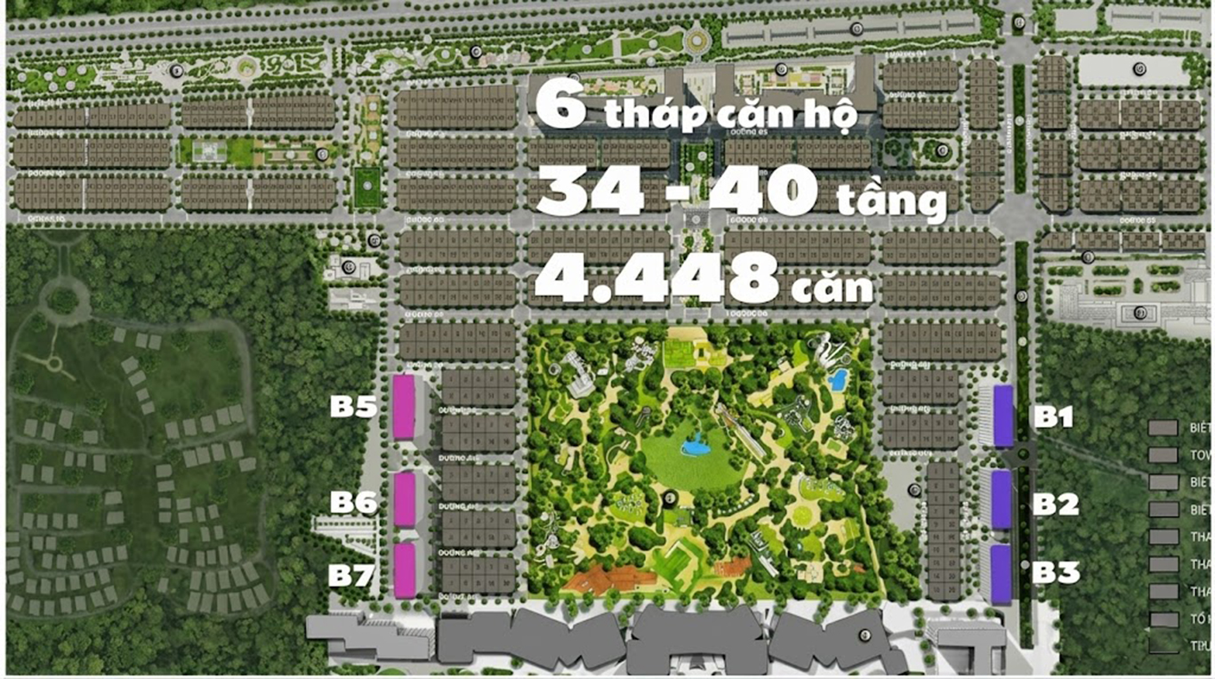 Trong đó tháp B5 40 tầng và B6, B7,cao 34 tầng.
