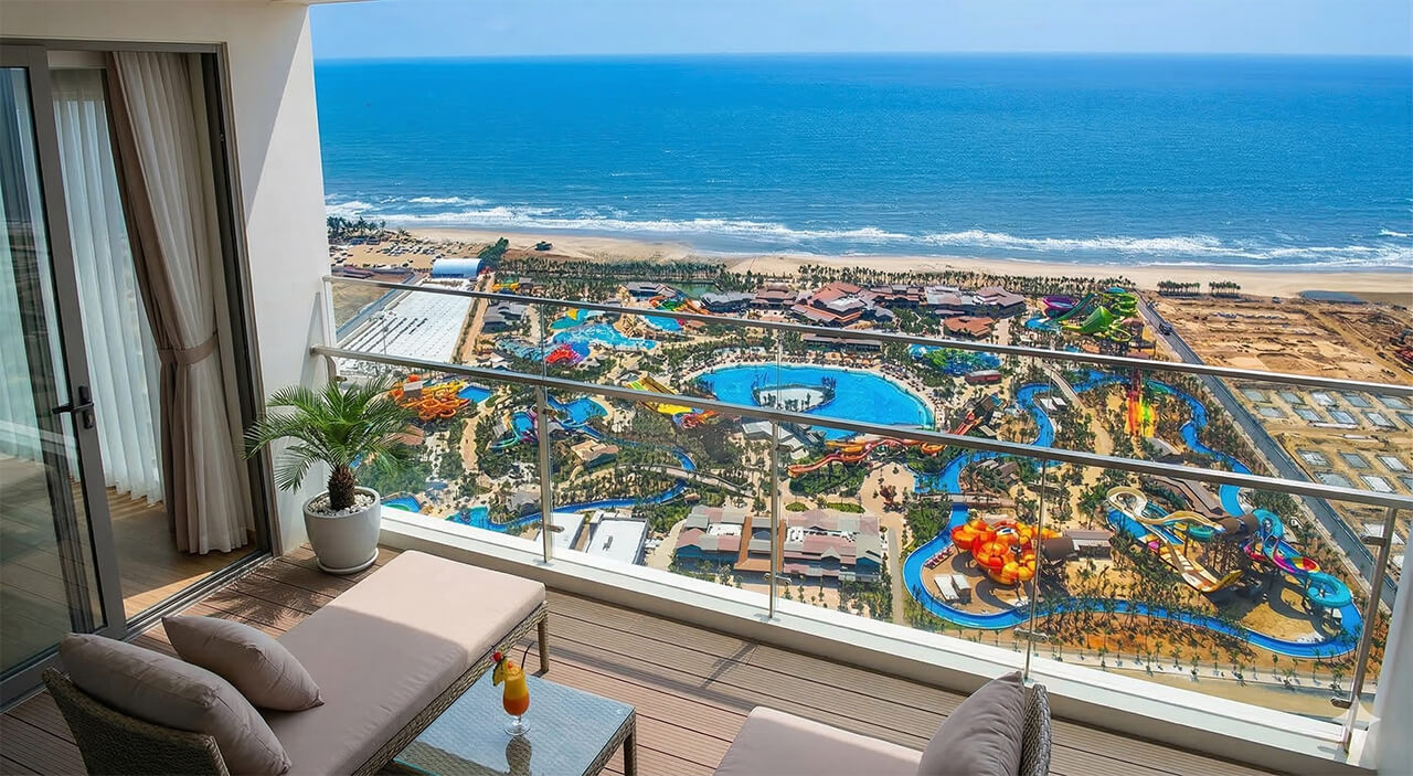 Tầm nhìn Panorama: View trực diện biển và Công viên nước Sun World đang hoạt động.