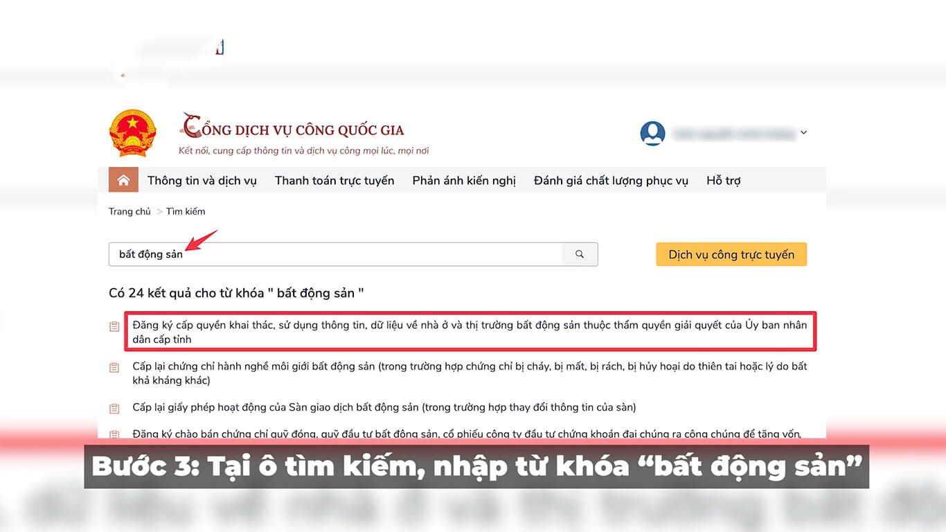 Để tiết kiệm thời gian, người dân có thể gửi yêu cầu tra cứu mã định danh điện tử bất động sản thông qua Cổng dịch vụ công quốc gia. Các bước thực hiện cụ thể như sau: