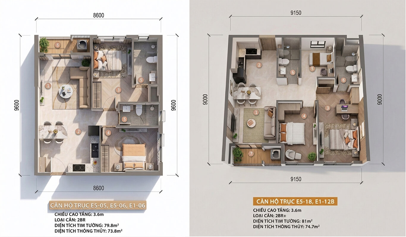 | Diện tích | 65.7m2 – 79.9m2 | 74m2 – 79.9m2 |